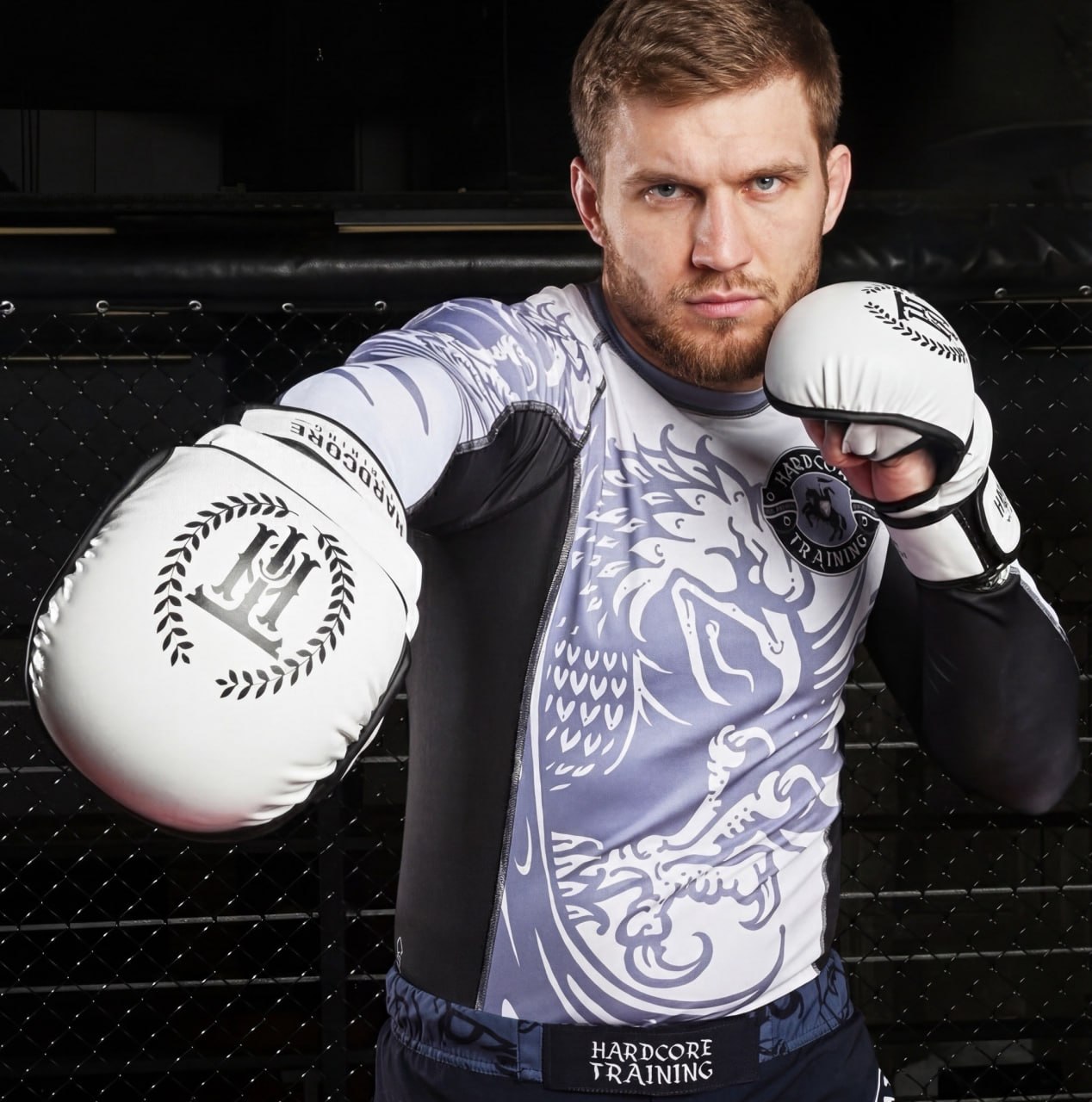 Безопасность головы обеспечивает боксерский шлем Hardcore Training, спроектированный с учетом максимального обзора. Шингарды из той же серии закрывают голень и подъём с хорошей плотностью прилегания, не сползают при партере и не мешают движению.