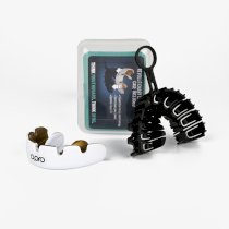 Боксерская капа Opro Instant Custom-Fit разработана для брекетов и пластин. Основным отличием и ключевой особенностью является запатентованная система ребер по внутренней части капы для брекетов. Данная технология способствует созданию точного слепка брекетов, с учетом индивидуальных анатомических особенностей челюсти. Несколько слоев внутреннего формовочного геля, обеспечивают не только комфортную посадку, но и непревзойденную защиту.