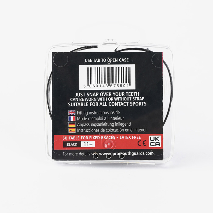 Ключевая особенность данной капы в том, что она не требует варки, сделана специально под брекеты. Opro Snap-Fit протестирована британскими специалистами-стоматологами. Капа выполнена из полимерного слоя, разработана специально для защиты зубов и брекетов от повреждений во время тренировок, для минимизации зубных сколов.