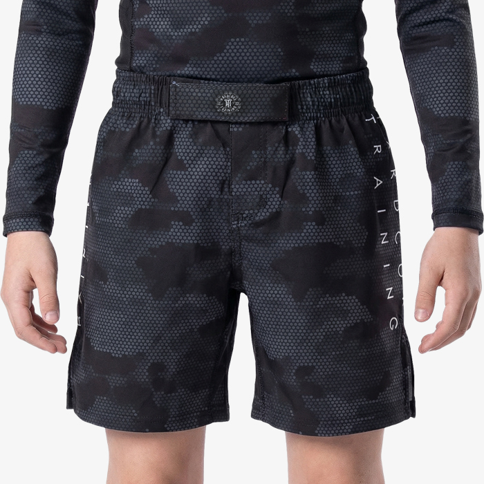 Детские шорты Hardcore Training Hexagon Camo - это базовые чёрно-серые камуфляжные шорты. Отлично впишутся в любой спортивный гардероб как нестареющая классика.