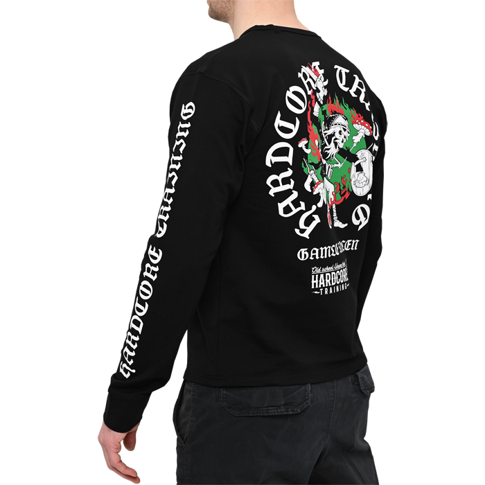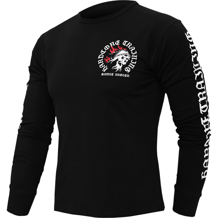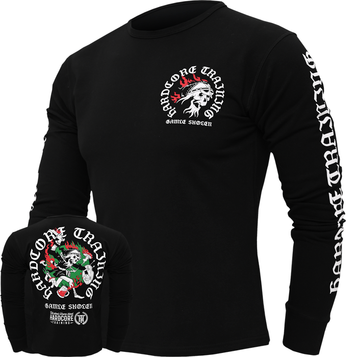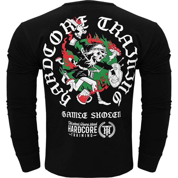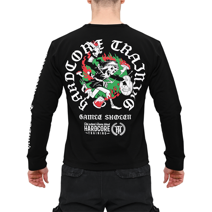 Лонгслив, который отлично подойдёт ценителям чёрного юмора, сумасшедшим грибникам и любителям потягать железо.