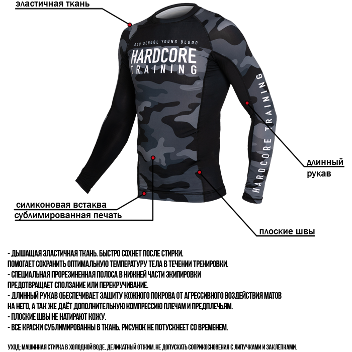 Любите тёмные краски ночи и камуфляж? Hardcore Training есть что Вам предложить - Рашгард Hardcore Training Night Camo 2.0. Почувствуй себя на своём пути, хладнокровный боец.