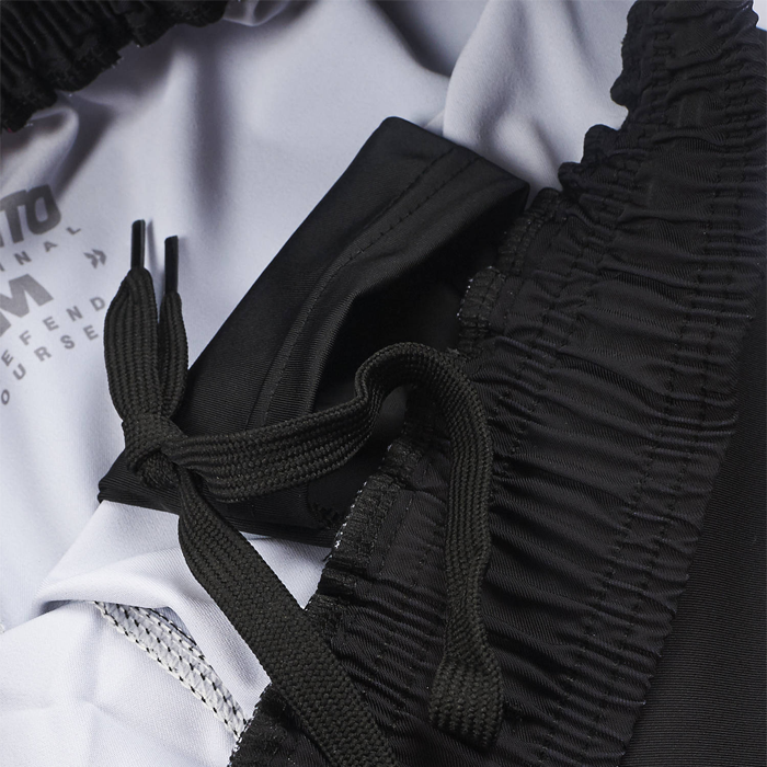 Особая "скользящая" ткань не сковывает движений, позволяя бойцу свободно перемещаться и проводить техники. Эластичная вставка в промежности дополнительно увеличивает свободу движений.
