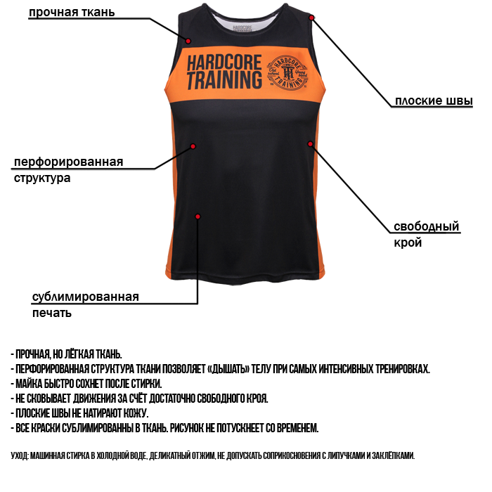 Тренировочная майка Hardcore Training Black/Orange.
