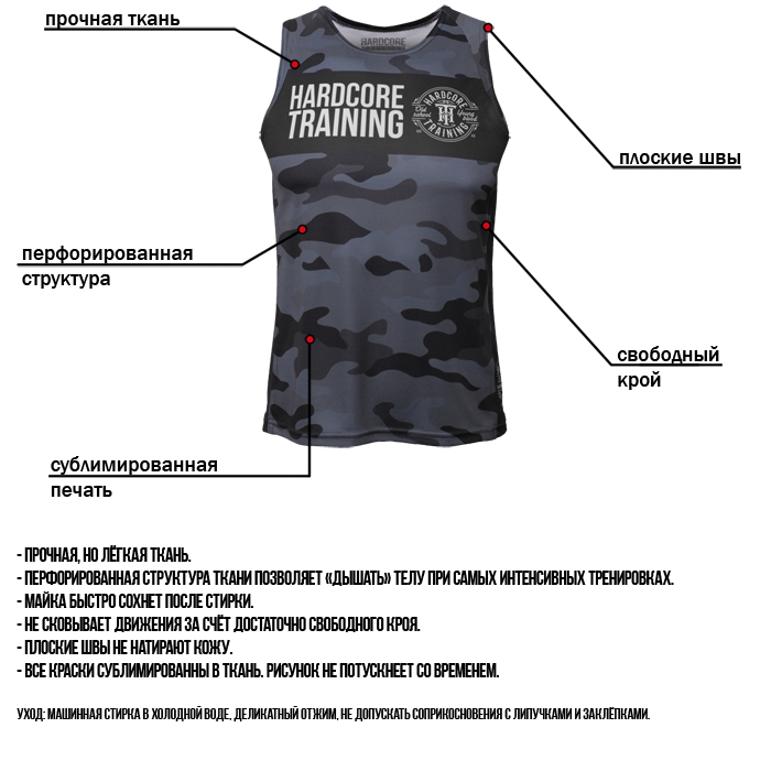 Майка Hardcore Training Night Camo для комфортных тренировок любого уровня интенсивности.