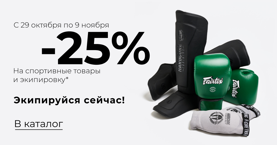 *Акция не раcпространяется на категории: «Кимоно для дзюдо», «Оборудование», «Сертификаты», «Чехлы для телефонов», «Прочее», «Обувь», «Новинки», бренды: «Adidas», «Affliction», «Asics», «Benlee», «Cleto Reyes», «Clinch», «Everlast», «Flow», «Fly», «Grant», «Green Hill», «Habrok», «Hayabusa», «Helmetex», «Hit N Move», «Leaders», «Lonsdale», «Mizuno», «Nike», «Packlife», «Paris Saint-Germain», «PowerDot», «Primo», «Reversal», «RockTape», «Ronin», «Shoyoroll», «Simms», «Sitka», «Storm», «The North Face», «Twins Special», «Tyr», «Ultimatum Boxing», «Under Armour», «V-Motion», «Winning», «Xtreme Couture» и не работает с другими акциями и скидками.