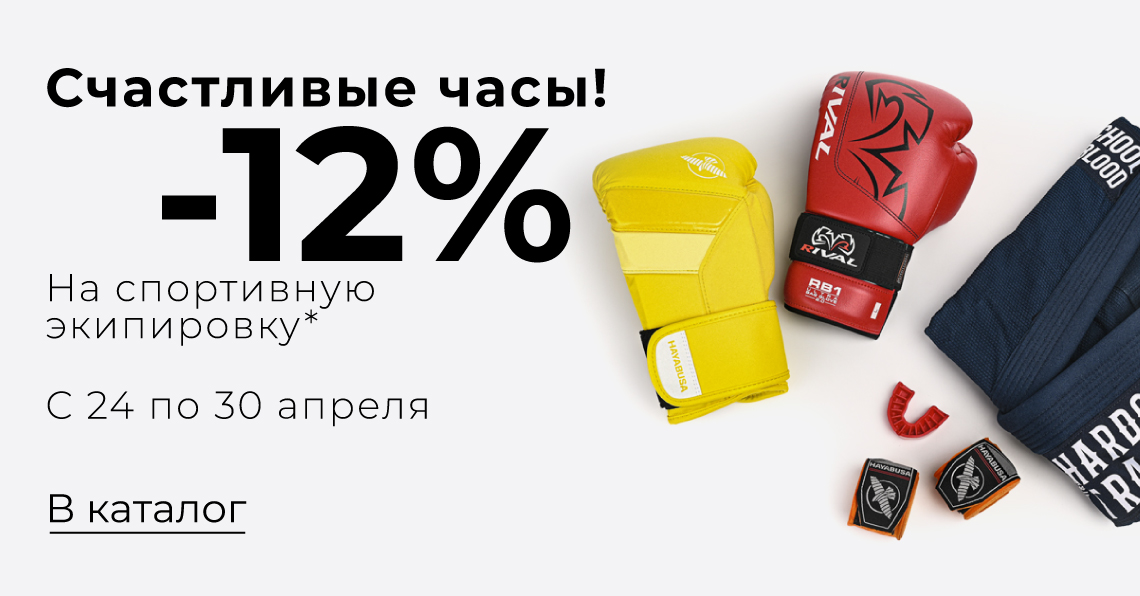 *Акция не раcпространяется на категории: «Распродажа», бренды: «Cleto Reyes», «Grant», «RaveTape», «RockTape», «Tyr», «Winning» и не работает с другими акциями и скидками.
